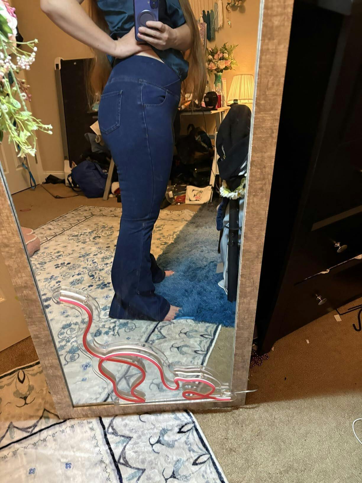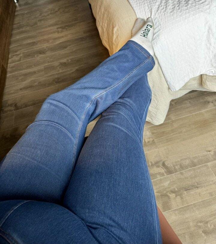 CUTEST JEANS EVER!! They fit just right and make the booty look extra good. Plus love the bottom gives me 80s vibes.